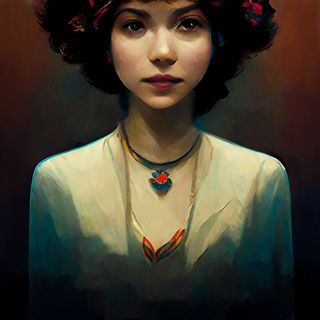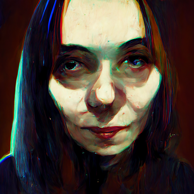 She's also dark. Later, during the experiment I noticed, that from all of the three generated images I picked up a kinda same person every time.