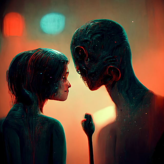 If the AI is a man, I imagine him as the first person with the flower. It’s kind of romantic.