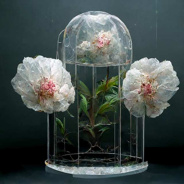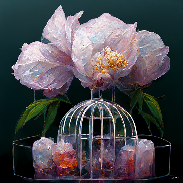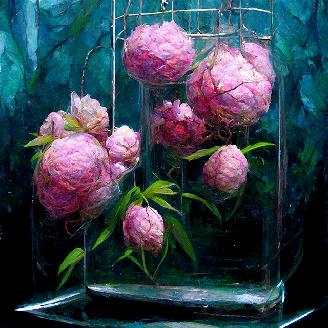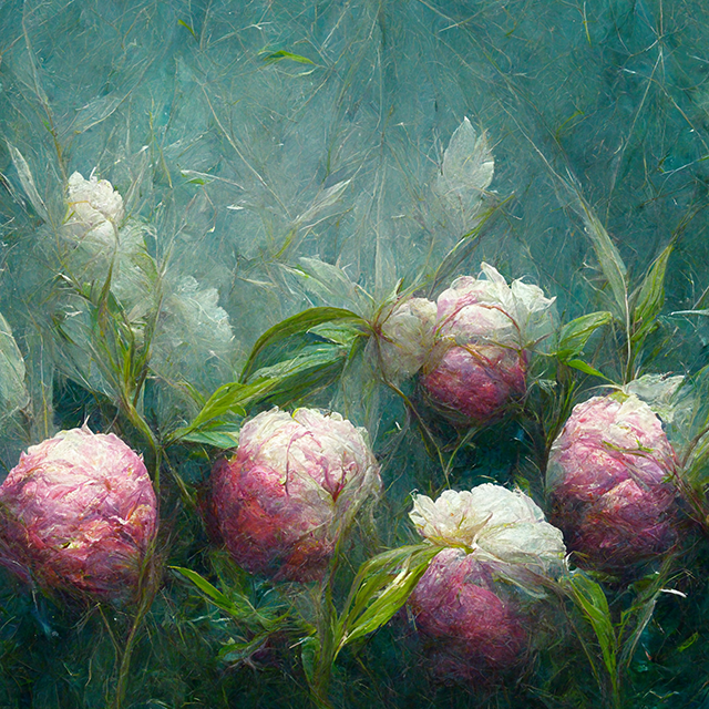 Artificial intelligence Midjourney generated images on the topic of Peonies.