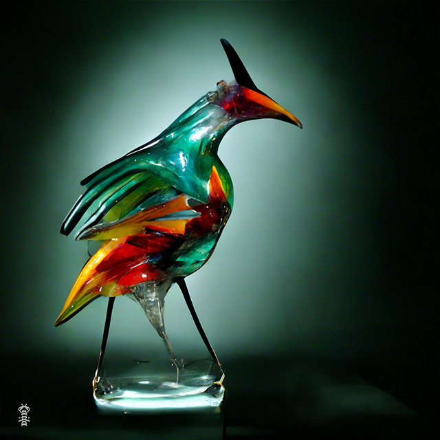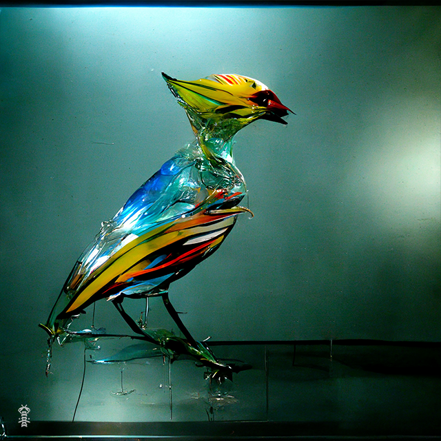 AI-generated images in this selection are made with Midjourney. The engine was rendering “Glass Bird“.