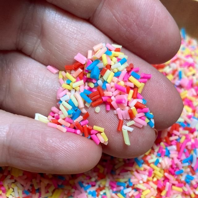 These are earrings made of toy sprinkles with a matt finish.